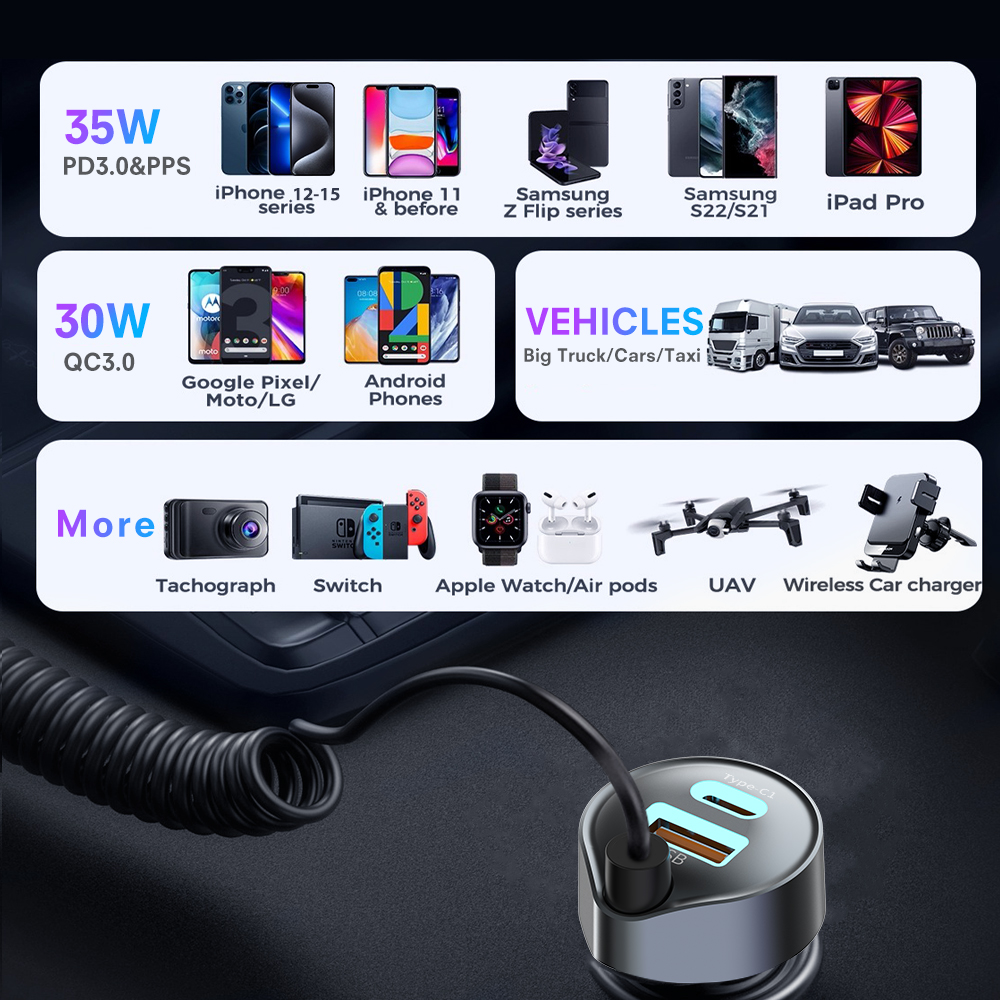 Typec:5V/3A,9V/3A,12V/2.92A,15V/2.33A,20V/1.75A PPS:3.3-11V/3A 35WMax USB:5V/3A,9V/3A,10V/2.25A,12V/2.5A 30W Max