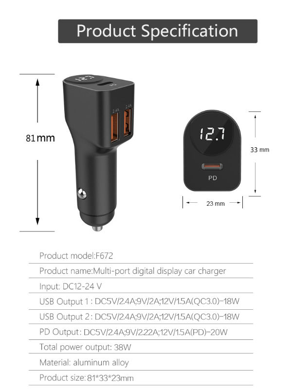 USB1/2:5V/3A,9V/2A,12V/1.5A(QC3.0)18W